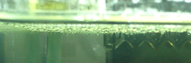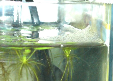 どうも、一番初めに見たベタ繁殖のHPではエアレーションは強め、かなり強めがいいと思います、といった事が書かれていたが、実際ベタの卵は水面に浮いている状態だし、泡巣で孵化するのだって水面と空気とでは筋が通っている。