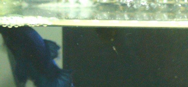 見てないふりして見る事にした(笑)稚魚の様子は水平にスイスイィっと泳ぐ者が数匹居る程度。まだ大半は泡巣にぶら下がってる。いろいろな情報から孵化3日目ぐらいからブラインシュリンプを食べられる稚魚もいるというので、ブラインベビーなる冷凍のものを解凍してすこぉーっし入れてみた。