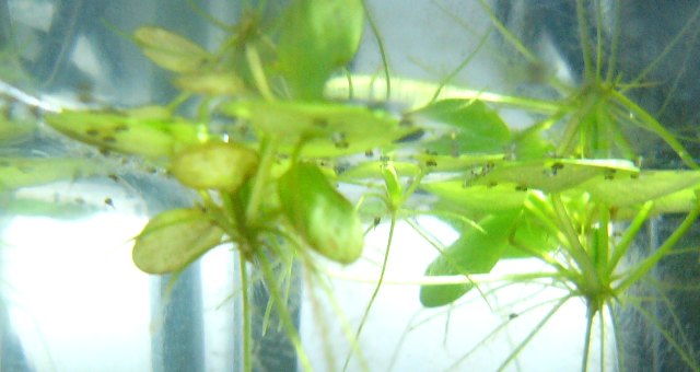 24日:親オスが居なくなり、泡巣もだんだん消えて、頼るものがないので、浮くタイプの水草を少し投入。