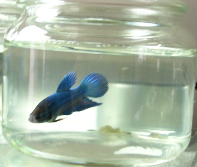 まだお見合い中のはずだったメスは、今朝には自らプラケース(ブロッコリースプラウトの容器に穴を開けたもの)を乗り越え、勝手に混泳していた。午前中は左脇腹を酷く突かれた様子で鱗は勿論少しお刺身が(肉が)見えていた。夕方まで死闘を繰り広げるようなら取り出そうと思っていたが、そんな心配は全くいらなかった。